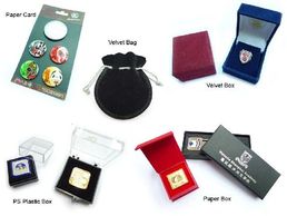 From the ever popular Soft Enamel to the classic Cloisonné style, each is manufactured for virtually any need with quality and speed. We also offer optional ways to display your pin in a classy, yet functional manner as well with custom printed card stock, clear-top cases or velvet jewelry cases. These options are ava
